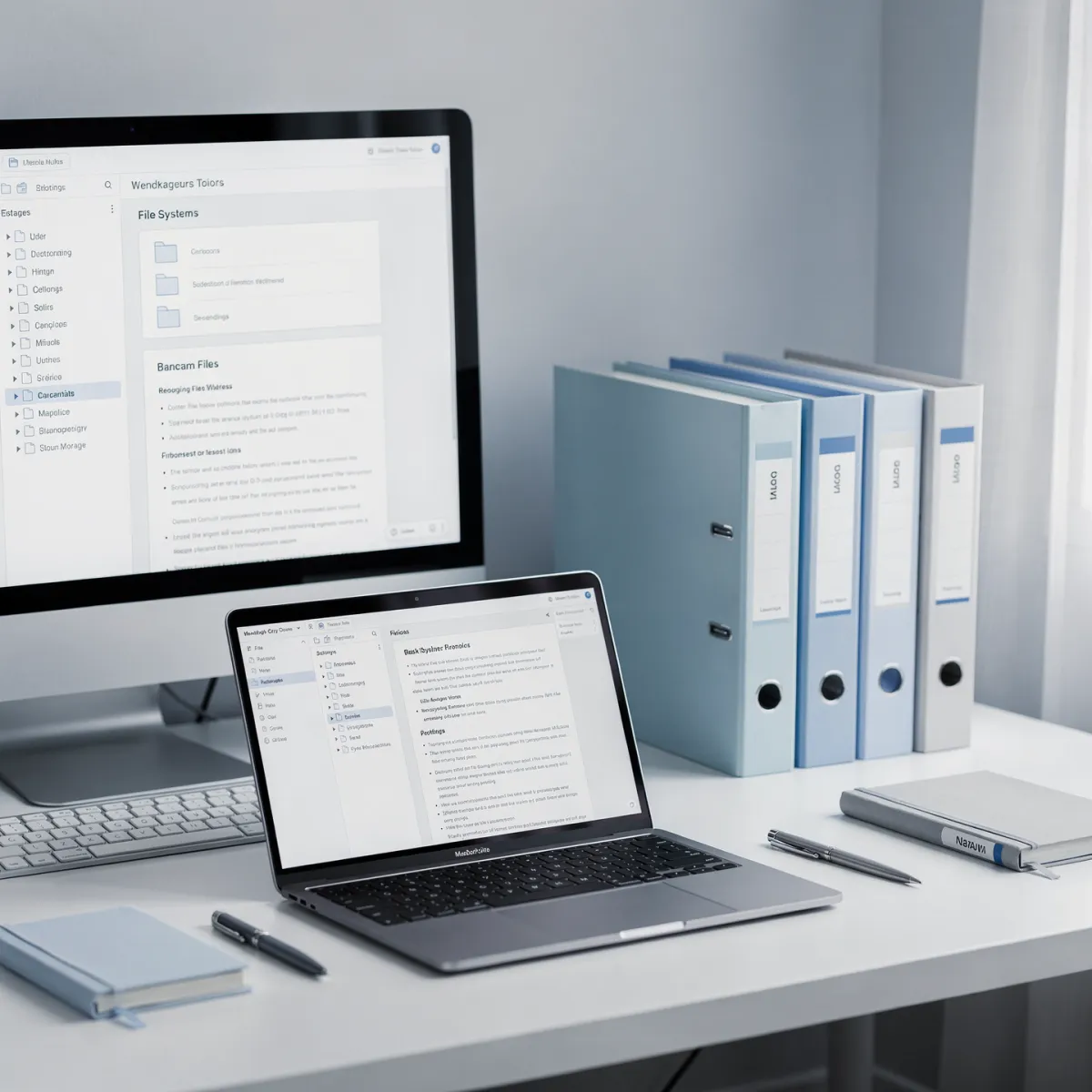 Organization and maintenance of business records, file system implementation, document version control, and archival processes. Support for digital and physical documentation systems.
